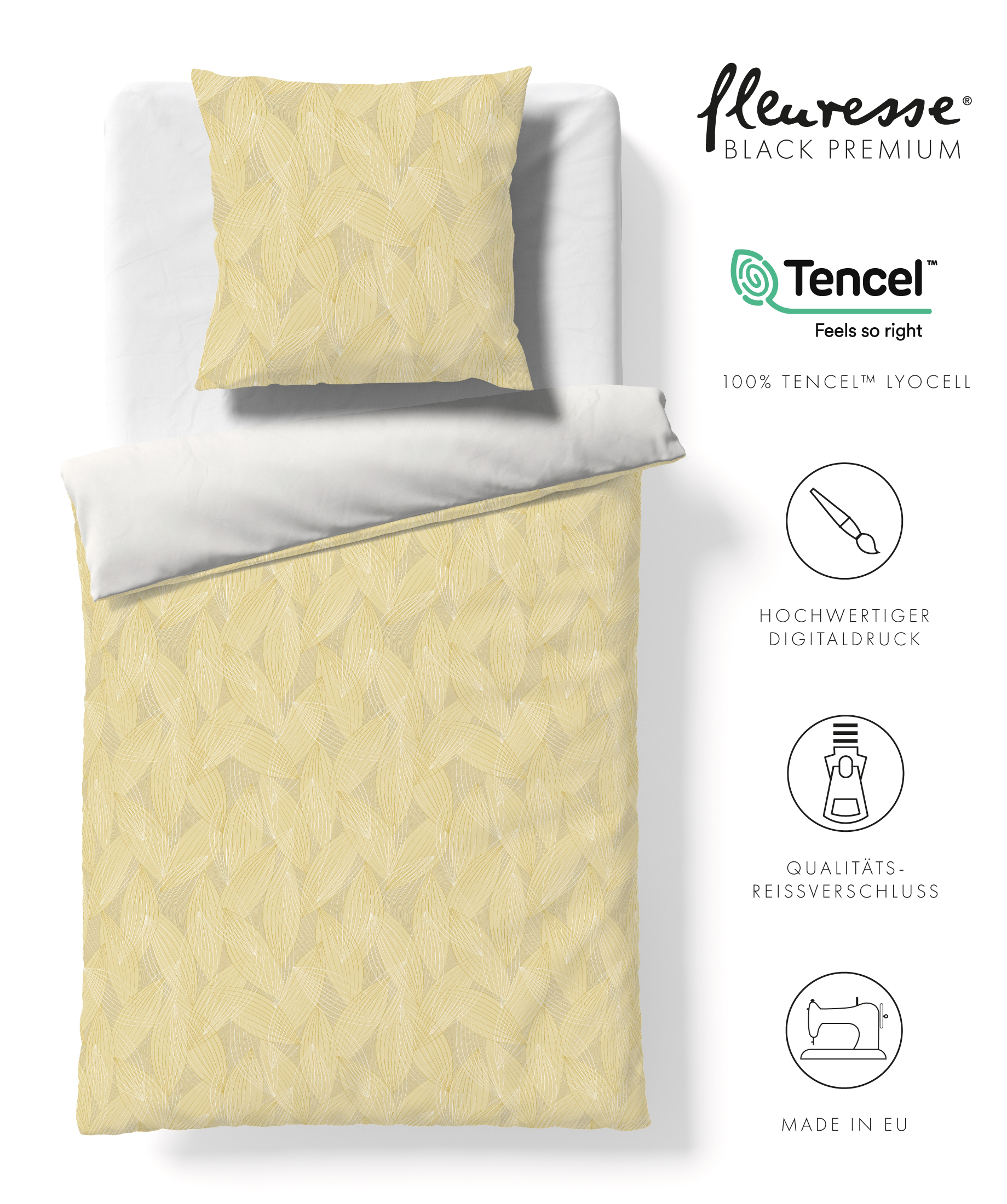 Details - Premium Tencel Satin Bettwäsche gelb