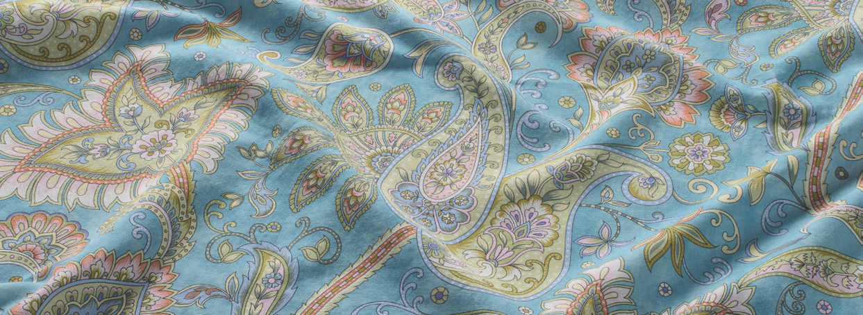 Das klassische Paisley-Muster verleiht der Provence Cassis Bettwäsche eine stilvolle und zugleich lebendige Ausstrahlung. Die feinen Ornamente erinnern an traditionelle Textildesigns und wirken dennoch modern durch die frische Farbgestaltung.